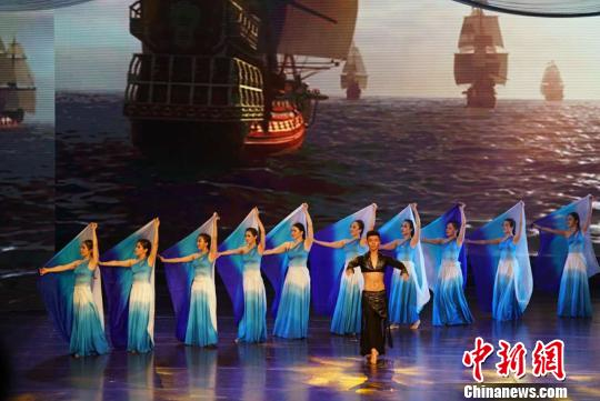 该舞蹈诗运用后现代与原生态的综合表现手法诠释了一种新的意境。现场,跟随舞者曼妙的具有民族特点的舞姿,观众们仿佛漫游在2000年前的“丝绸古路”和“海上丝绸之路”上。 祖忠人 摄