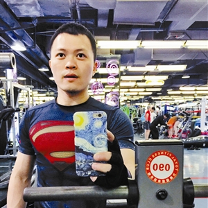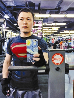 ▲Troy在传统健身房锻炼时自拍。受访者供图