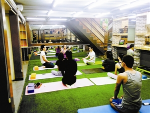 说话间,一位50岁左右,身材姣好的女学员前来询问贺江浩10点课程的问题。回答结束后,贺江浩告诉记者这位女学员,是多年瑜伽老师,子女都出国留学了。
