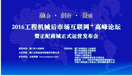 “2016工程机械后市场互联网+高峰论坛”将于5月19日在海上花园城市厦门(凯宾斯基大酒店)举行。本次论坛由正配科技主办,正配商城承办。论坛在厦门市人民政府指导下,得到了厦门市海沧区人民政府、厦门市科学技术局、厦门市质量技术监督局、中国电子商务协会、全国土方机械标准化技术委员会、国家场(厂)内机动车辆质量监督检验中心、中国工程机械工业协会工程机械配套件分会、厦门市电子商务协会等部门和组织的大力支持。