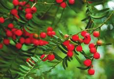 紫杉是小乔木,又称红豆杉、赤柏松,从植株中提取的紫杉醇,是世界公认的抗癌药,因而,紫杉也有“生物黄金”之称。