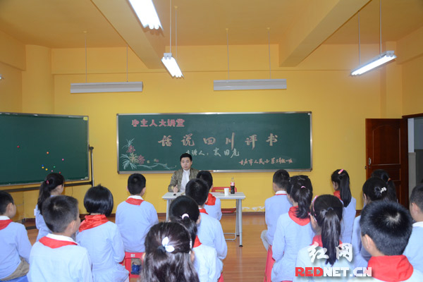 在人民小学《四川评书》课上,专家正话说四川。