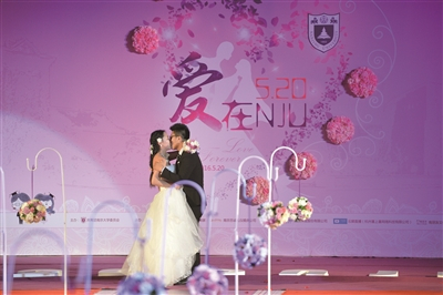 “你们的爱情在南大开花结果,今天在这里踏上人生重要的旅程,对你们表示衷心祝福!”陈骏诚挚地说,时光飞逝,南大已走过114年风雨。今天,在这里见证了新人们对爱情的承诺,520代表“我爱你”,代表了母校对学子们的深深的爱,还有期许和祝福。