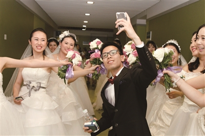 这114对中,有校友50对(其中31对双方均是南大校友),教职工12对,还有在校生52对,其中均是南大在校生的24对,不乏本、硕、博均在南大完成学业的学子,也有同院系从本科一直走到硕士的新人。
