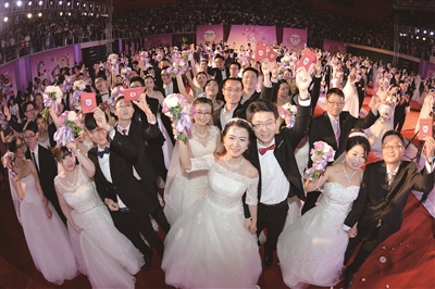 南京大学114对新人办集体婚礼 校长为校友证婚