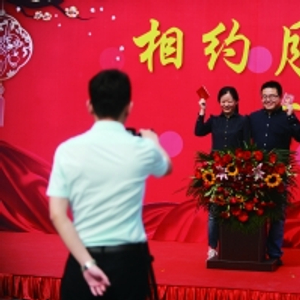 家住鲁谷附近的新郎小刘告诉北京晨报记者,网上预约的时候,西城区婚登处推送了月坛公园这个临时的办公地点,“最初选择月坛就是为了减少排队时间,因为登记完了还要去上班。没想到来到现场感觉挺意外的:公园里景色优美,‘月坛’的文化寓意也好,还有好多陌生的大爷大妈送祝福,感觉特幸福。”