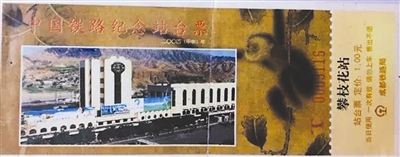 而站台票则能从票面上看出当时攀枝花车站的外观。它是1997年4月1日攀枝花-北京特快列车首发纪念。据贾明介绍,有很多外地人汇集在攀枝花参与建设,每逢春节回老家要到成都转车,这列车开通后,相当一部分攀枝花人回老家不用在成都转车了。