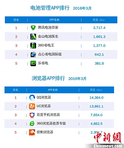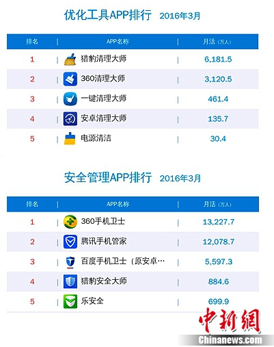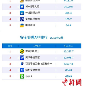 中新网5月24日电 前不久,Analysys易观千帆发布2016年Q1移动应用数据,其中猎豹移动5款产品:猎豹清理大师、猎豹安全大师、金山电池医生、猎豹浏览器、万年历均以压倒性优势占据同类APP榜单前列。