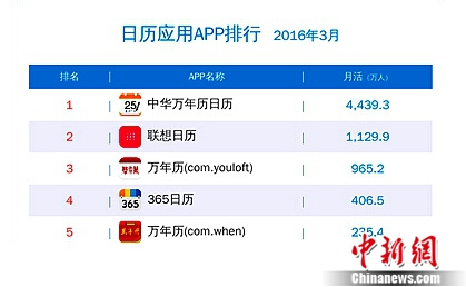 “易观千帆”2016年Q1发布的移动应用数据部分榜单