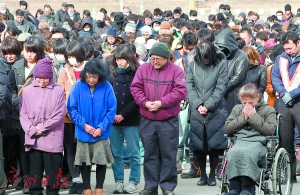 当地时间2015年3月11日,日本福岛第一核电站附近,民众为福岛核泄漏事故遇难者默哀。(资料图片)