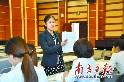 程丽红在辅导员工。