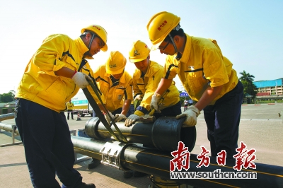 为尽快熟悉并熟练掌握设备的应用,抢修员们分成若干小组,利用夜间值班待岗期间或是晚上下班以后的闲暇时间进行轮流训练,甚至通过互相监督、竞赛的方式促进班组人员整体操作技能的提升。果然功夫不负有心人,经过不断的训练,王勇跟队员们不但对设备操作熟练了,还凭借着对设计原理的理解对设备进行了升级改造。王勇说,该设备刚引进东莞时是不具备减压功能的,泄漏点管道两头封堵之后,中间管道中的气体不能放出来,存在安全隐患。另外在操作完成之后,设备不能补充压力以平衡两端,设备使用之后拆卸不出来,导致在抢修时很不方便。