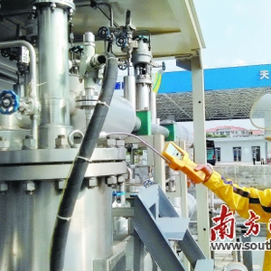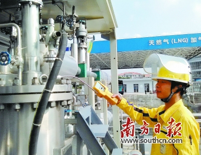 从东莞市汽车东站出站口右转50米,花草簇拥间便是东莞新奥汽车东站LNG加气站。第一次见到梁宇帆时,他刚交接完夜班,此前的几个小时刚刚卸完一槽车LNG。