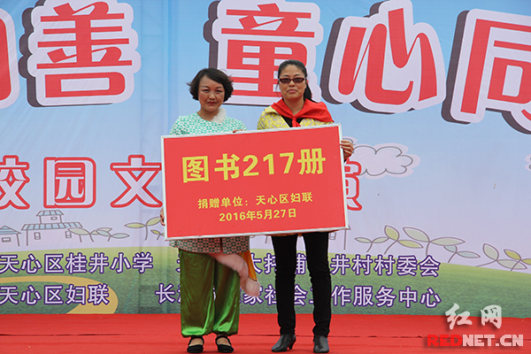 活动最后,维家社工组织为这次获奖节目的孩子们赠送了礼物,天心区妇联为桂井小学的知心屋捐赠了图书,桂井村村支两委的领导也分别给孩子们送上了文具、钢笔等非常实用的“六一”礼品。