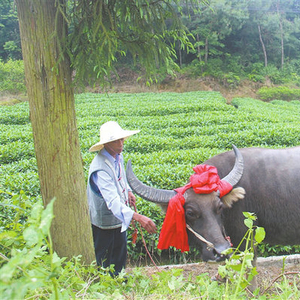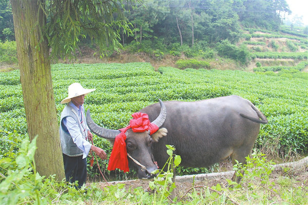 耕牛历来受到畲族农户的爱惜和保护。“牛歇四月八,人歇五月节”这一谚语就早在畲村广为流传。畲族传统节日“四月八”也是爱牛节。这天,畲家人把自己的耕牛身体洗干净,在头角上佩红布,用最好的饲料喂给它吃,把自家做得最好“牛酒”拿出来给耕牛喝,以犒劳它一年来的辛劳。耕牛在“喝酒”时,牧童在旁边一遍一遍地唱“牛歌”。