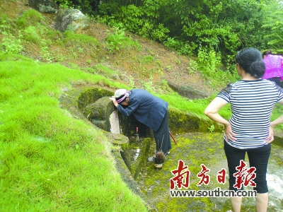 就要往左回到老宅的刹那,老人突然犹豫起来,竟然率领大家从右边走去,约莫50米后,面前出现一口被绳索拉得伤痕累累的老井,老人说:“当年妈妈就在这里挑水。如果看到我和二哥围在井旁看游动的小鱼,妈妈就赶我们回去,说掉下去可了不得,会淹死的!”