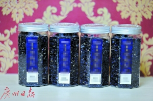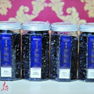 卖家告诉记者,野生黑枸杞花青素多,超过蓝莓。花青素“是天然抗氧化剂”,黑枸杞“抗自由基氧化能力是维生素E的50倍、维生素C的20倍。”