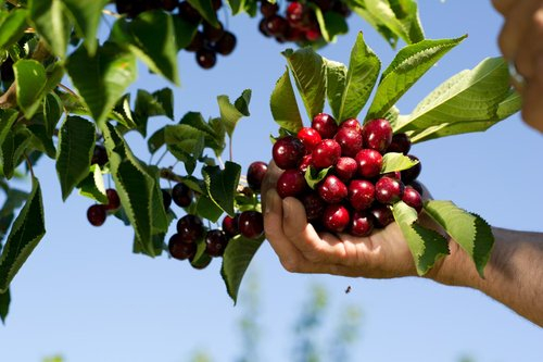 每年的6月中上旬至8月中上旬是美国西北樱桃的收成期,当一颗颗嫣果实成熟至阶段时才进行人手采摘,并通过电脑和人工分级筛选出颗粒饱满、新鲜无损的樱桃,用浅盘装载并盖好,之后迅速运送到包装厂,进行预冷、清洗和挑选,装入塑胶袋及纸箱内,直销至全球市场。而颜色鲜艳、口感更甜的蕾妮樱桃由于不会同时成熟,每一棵树要分别采摘达8次之多,为不损伤果实,采摘蕾妮樱桃所需的人手也比一般红樱桃多上10倍。