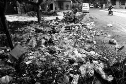 同样的情形在西安城西的花园村亦十分扎眼。在该村村北的路边,一堆占地近百余平方米的生活垃圾,据称已存在数年之久,里面不光有被扔掉的皮鞋、破沙发,还有废弃的马桶,数堆腐烂变质的杏子。附近一村民说,村里以前是说要每家每户集中收集生活垃圾的,但后来不知怎么就全堆到了这片空地上,一到夏天,臭得连门都不敢开!