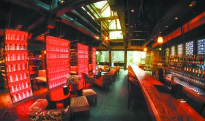 由HYATT集团御用日本著名设计团队super potato倾力打造的这个宋代风格“秀”酒吧像一个空中庭院,到处是灰色屋瓦、深棕木柱,一派古色古香,这里拥有五个不同的主题酒吧,每个区域各有特色。对于喜爱艺术的人们来说,来这里还能欣赏到艺术家的作品,比如一进“秀”酒吧大门,就会看见中国著名雕塑家蔡志松以及青年艺术家彭显锋以《云屏》和《云工厂》为主题的艺术品,运用多层玻璃板喷绘而成,制造出一团团云雾的效果,再用精美的泡泡加以包装,呈现出一种梦幻的美感。