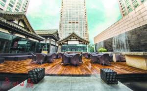 在帝都的CBD,落座于银泰中心IN01座6层的天台,会有种时光穿梭的感觉。因为这里被打造成了古色古香的宋代风格,放眼望去复古的亭台楼阁与周边的高楼大厦形成强烈对比,而这也是北京现代CBD楼宇中唯一的宋代风格仿古式空中庭院,不少在CBD工作的金领和商务人士都非常喜欢在下班之后来这里喝一杯,放松一下因紧张工作而绷紧的神经。
