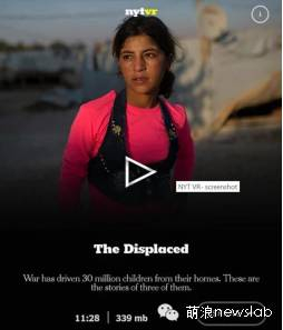 伴随着其客户端的发布,《纽约时报》推出了第一批五个虚拟现实视频,重点内容是一个有关全世界难民儿童的报道,该报希望读者能够关注全世界因为战争而被迫离开家乡的三千多万难民孩子的处境。