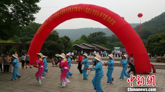 中新网南京6月15日电 (王津)伴随着“咚咚咚咚锵!”的乐器声,身着青色或红色彩衣的“财神”在游客的围绕中前进,热闹非凡。6月15日,由常熟市旅游局、虞山尚湖旅游度假区管委会主办的2016第13届江苏常熟森林旅游生态观光节暨第18届虞山宝岩杨梅节在虞山宝岩湾隆重开幕,吸引了来自苏州、无锡、南京等地区近万名游客。
