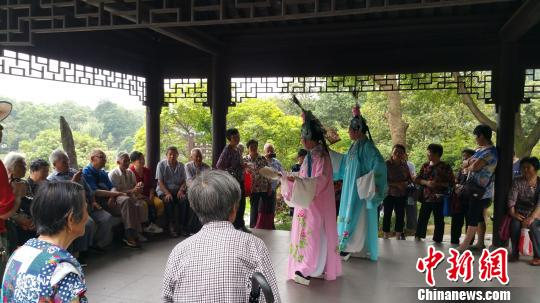 当地传统戏曲吸引游客驻足观看。 王津 摄
