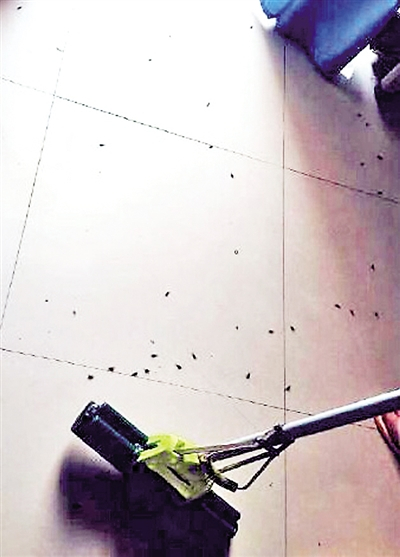 前天凌晨1点,忙了一天工作的陈先生想倒头就睡,却被妻子叫了起来,要求他把这些虫子消灭了才能睡觉。两人拿着杀虫剂,把空调角落、沙发下面、卫生间、阳台都喷了一遍。“早上醒来,扫出来十多只虫子尸体。”