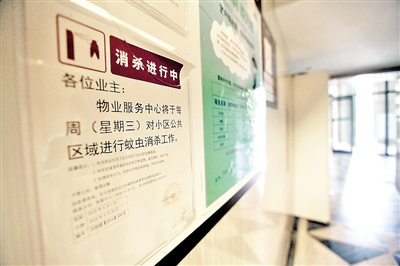 除了小区居民,物管们也在想方设法灭虫。入夏以来,不少小区的公告栏都贴出了灭虫公告。6月的每个周三,万科城的物管都会对小区喷药灭虫。如果家中发现了虫子,业主也可以去物管处领取杀虫药。