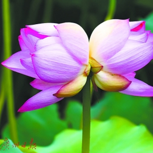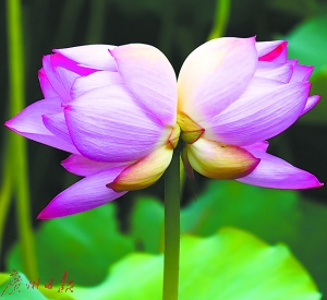 并蒂莲,茎秆一枝,花开两朵,可谓同心、同根、同福、同生的象征。在古代文学作品中,并蒂莲被誉为爱情的象征,寓意夫妻恩爱,美满幸福,也象征男女爱情缠绵,兄弟情同手足,感情深厚。广州日报记者黄文生 通讯员何荣文摄