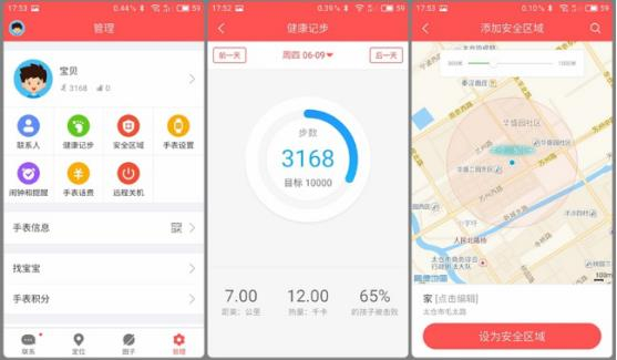 360巴迪龙儿童手表SE支持定位,在APP端可以清晰地找到小朋友所在的位置,而且可以将小朋友当天的运动过程以轨迹形式呈现。此外,360巴迪龙儿童手表SE还支持计步功能,可以方便地将宝贝的运动量化,更好地控制其运动量。整个APP中,最为贴心的一点恐怕是安全区域的设定,以家或学校为原点,半径一点范围内可以设定为安全区域,超过此区域APP即报警,让家长可以更好地了解宝贝的活动范围。