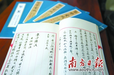 一函四册的《琴学汇成》古风扑面而来,深蓝色的封面,影印线装书,里面的清秀小楷,是由陈初生花了将近两个月的时间手抄而成。这套由清代岭南古琴名家何斌襄所编纂的古琴文献,一度失传,终于在2015年出版,凝聚了几代琴人的心血。