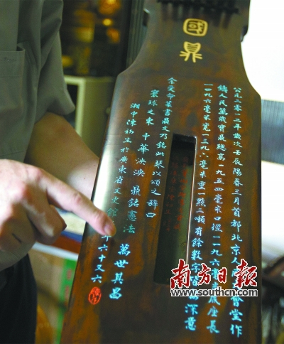 此后,陈初生在广东、福建、江苏等地物色古琴,中国当代大部分斫琴名家的作品,他都有收藏。在这60张琴中,价格最高的有两张,都花了20万元,一张是清代嘉庆年间的老琴,一张是扬州马维衡所斫的琴。前一张琴也是陈初生至今收藏的唯一的老琴,“老琴的价格都比较高,如果有琴铭的价格会更高。”