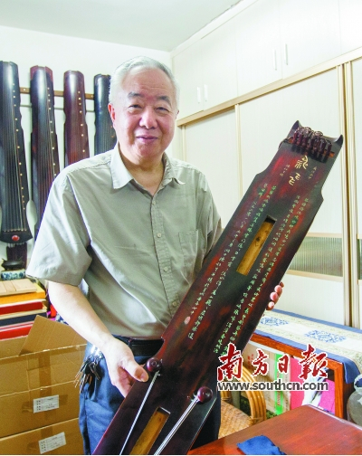 陈初生向记者展示他的古琴“神飞”。