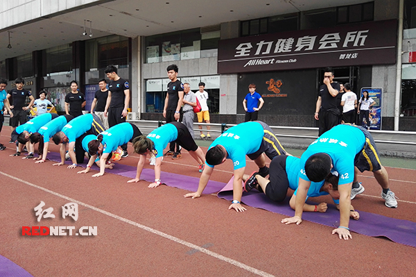 体验者参与“平面支撑爬”游戏红网长沙6月20日讯(时刻新闻记者 陈宗昊)如何科学瘦身是爱美的人们关注的话题之一。19日下午,全力健身会所VHC燃脂训练营在贺龙体育中心启动,本次活动作为长沙市第五届全民健身节之2016·全城热练的重要组成部分,共有16位市民代表参与体验专业“享瘦”课程。