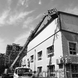 下午时分幼儿园正在教学,能听到孩子们的吵闹声。与此同时,一辆大吊车开进小区停放在路边,几名工人从前门进入园区开始作业。工头坦言,已在此施工近一周,“这种房子省事儿,盖起来快,再没两天就完事儿了。”记者询问是否有具有施工证时,对方回复“应该有吧,我也不知道”。