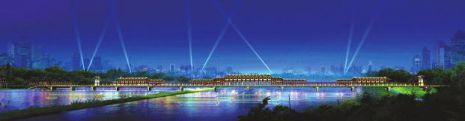 “目前,前面两侧的护栏已安装好,加工设计好的钢构建筑为半成品,需要在桥面上进行现场安装组合,因桥面上操作空间较小,施工的难度也相应加大。”该负责人介绍,渭水桥分为两层,一层可供市民徒步通行,二层则为休闲观景平台,桥上的建筑采用景观化的设计手法,将古代的廊、亭、牌坊等相互结合,形成了一定体量的秦风格建筑群,同时,也与周围的清渭楼,咸阳古渡等形成了具有特色的历史文化建筑群落,也是全国首座秦风格、横跨渭河双层人行景观桥。华商报记者 刘军伟
