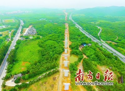 在建的深茂铁路阳江段与325国道、沈海高速相邻。梁文栋 摄