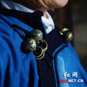 或金或银的扣饰是瑶家妇女的传家宝,要一代代继承下去。李柳音身上的扣子是她当年的嫁妆,她已经数不清传到她这一代经历过多少年了。即便经过岁月洗礼,但仍看得出当时精致的手工技艺,扣子虽小却象征了每个家庭的实力和荣耀。与扣子一起陪嫁的还有簪子、耳环、腰间银链、手镯、针筒,共6样金银物品。