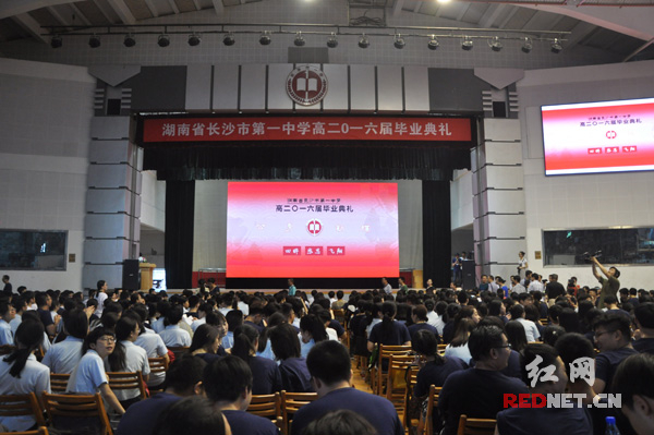 红网长沙6月24日讯(时刻新闻记者 周丹 实习生 张玉萍 通讯员 周恺)“多年师生情,今昔恨别离,满堂祝福语,只赠学子行”。6月24日上午,长沙市一中体育馆内人气爆棚,同学们的激情比炎热的天气更为火热,长沙市一中高2016届毕业典礼热烈举行。