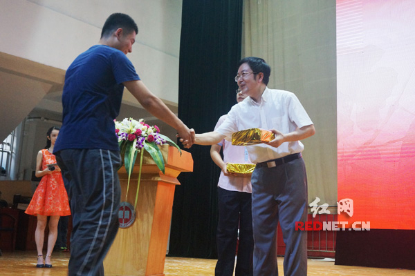 长沙市一中校长、党委书记廖德泉为同学们颁发毕业证书。