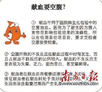 1)献血不同于医院做生化检验中的空腹抽血。医院为了避免因为摄入食物而影响检验结果的准确性,所以在检测某些项目前,要求受检者空腹接受检查。