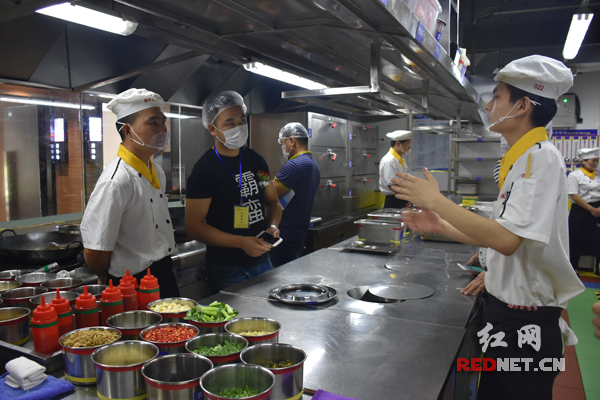 德旺悦餐饮公司兴汉食府厨师向参观者讲解4D管理体系