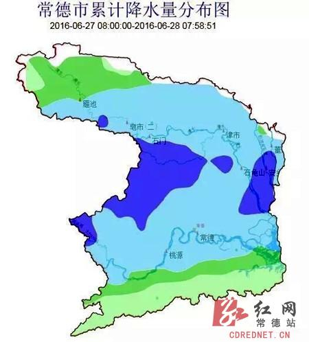 截至28日8时,全市面雨量达51.1毫米,最大雨量集中在石门县西部的罗坪-石水田、桃源县九溪-热市一带。而澧水流域均为暴雨,加之澧水上游的湘西、张家界等地区普降暴雨和大暴雨,自28日13时30分,澧水流域控制站石门站水位超过警戒水位58.5米,至14时20分,达58.58米,超过警戒水位0.08米。