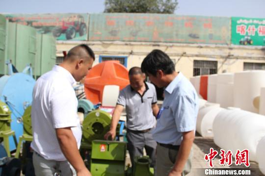 当日11时许,杨保国来到喀什最大的农牧机械市场清泉市场与商户周玉明洽谈对接在吉国销售事宜。