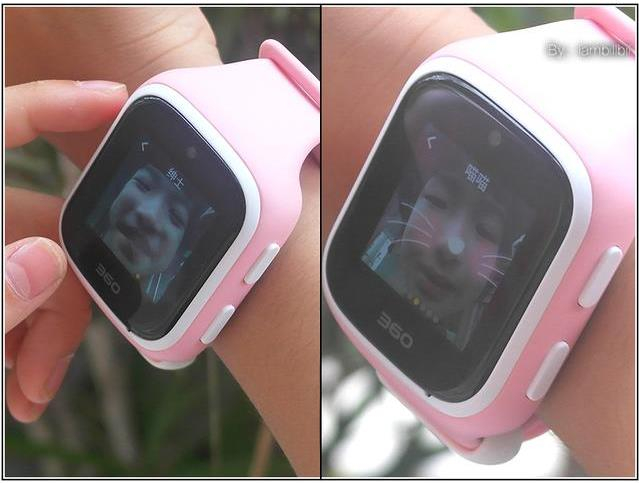 针对拍照,手表除了加入一键美白效果外,还特意提供了五款不同风格的萌拍效果,效果还会随着人脸移动即时呈现变化,增加拍照乐趣。可以变成英雄,变成巴迪龙,变成猫猫脸,完全是个逗孩子开心的功能呀。