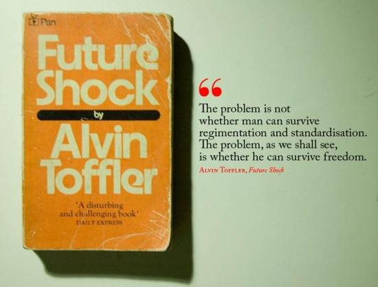 1970年,托夫勒的著作《未来的冲击》问世,这本讨论美国未来政治和社会制度的鸿篇巨制,在国际间引起强烈反响,被译成50多种文字,畅销700万册,为英语世界创造了一个流行的新词“Futureshock(未来的冲击)”。据国际科学情报研究所统计表明,它是社会科学文献中被引用最多的著作之一,直到今天还不断出现在报纸杂志的大标题中。