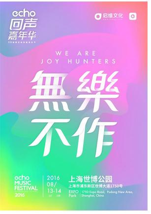 「echo回声嘉年华」是由启维文化每年8月暑期档举办的大型潮流音乐节,邀请在年轻人中极具影响力的重量级明星阵容,打造高质量与超前的音乐品质,并结合先锋的艺术概念和科技手段,现场设置3D体验馆、VR体验馆、互动游戏区、艺术体验装置等,营造独有的3D「沉浸式」音乐节体验。将是每年音乐节中制作水平最高、年轻人中最受欢迎的新型音乐节。这里只有音乐和快乐,在这样一个狂热的夏天,沉浸在音乐的海洋,做一个快乐的捕手,收获这一场视听盛宴!