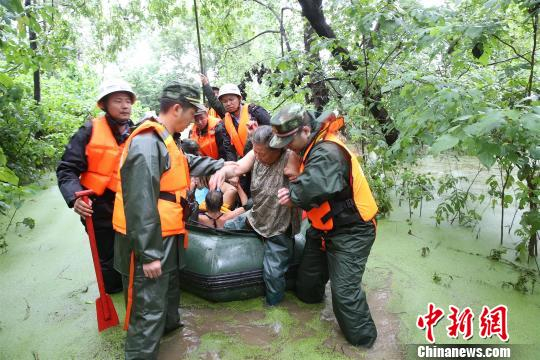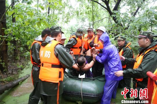 中新网仙桃7月6日电 (杨会 谢李斌)7月5日至6日,湖北仙桃市持续性暴雨致西流河河水猛涨,造成河南村46户200余名村民被困。汉江消防支队官兵紧急转移被困村民,截至目前,被困人员已全部转移。